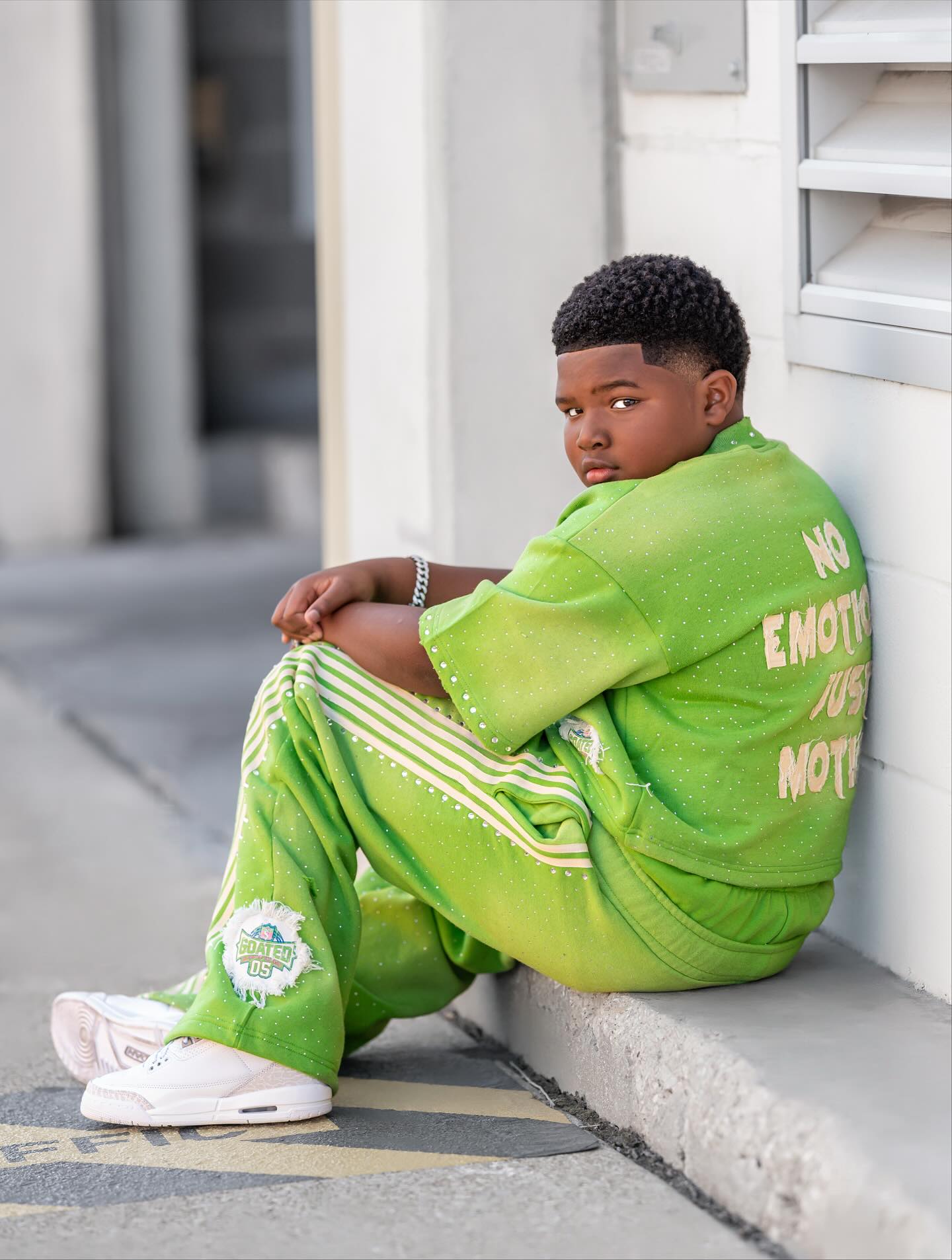Customized appliqué patch embroidered two-piece children's tracksuit, 100% cotton, double waist striped sweatpants, 2025