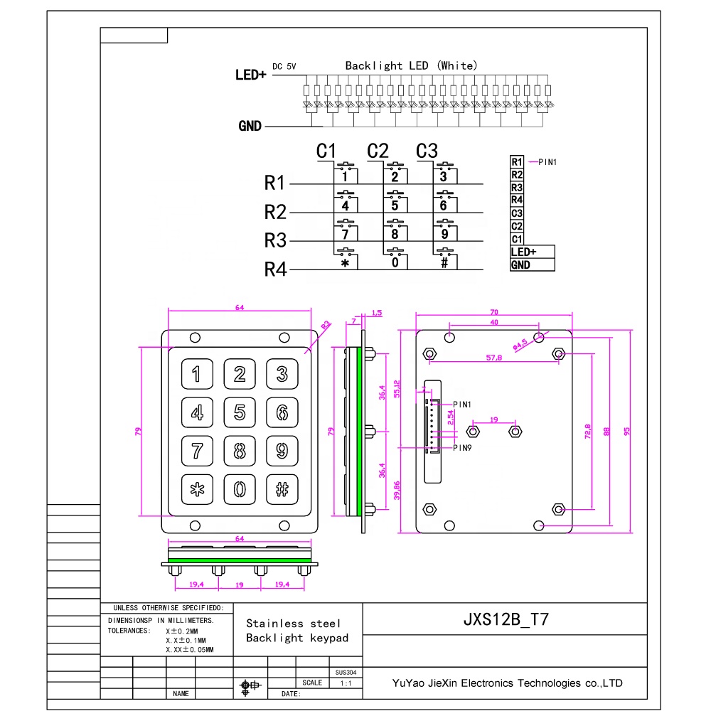 Customized 4X3 Matrix IP65 LED Backlight Control Outdoor Sunlight Responsive Metal Keyboard