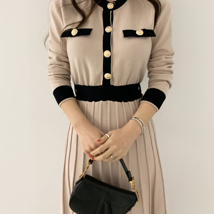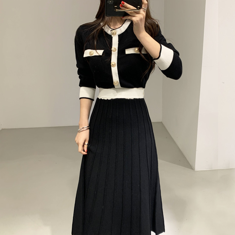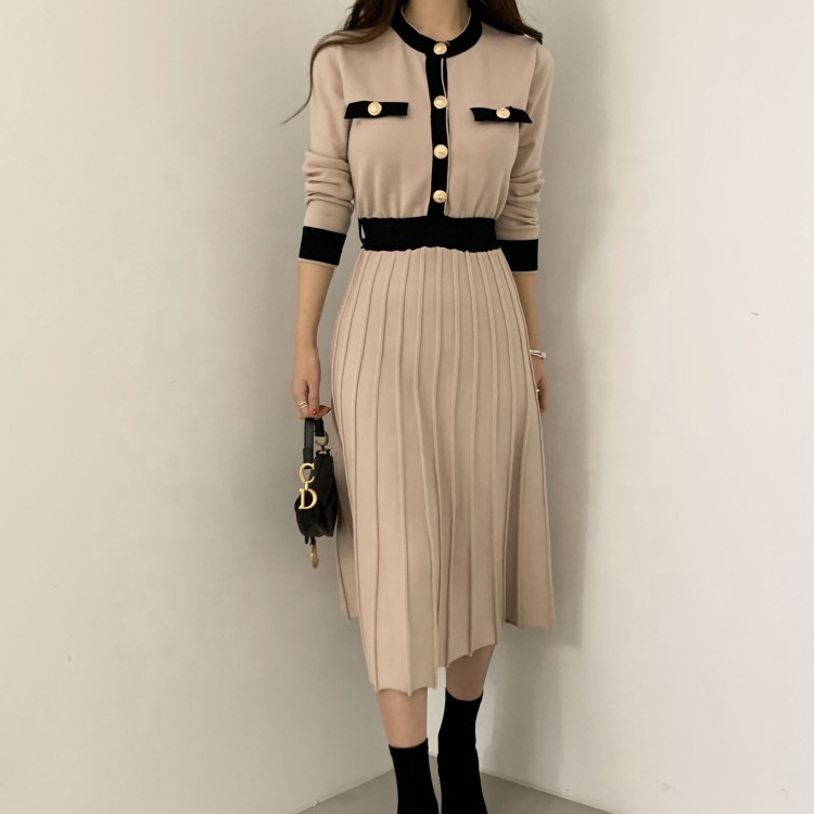 Knitwear Manufacturers Custom Elegant Women's Knit Slim a Line High Waist Pleated Dress Women Soft Ladies Long Sweater Dress