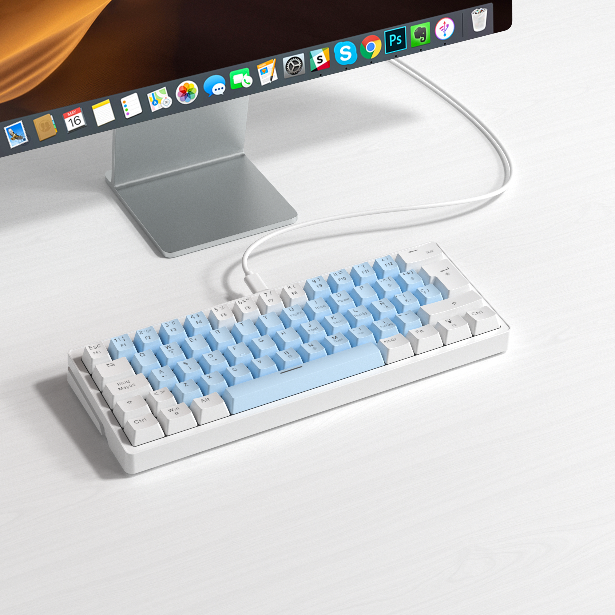 60% portable pad ergonomic gaming mechanical keyboard rainbow backlight hot swappable ABS keycap C-type wired keyboard
