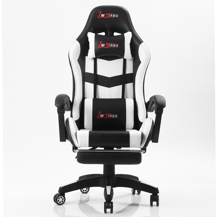 Ergonomic computer game player racing high-end wholesale game leather cheap computer customized quality game chair with foot pad black
