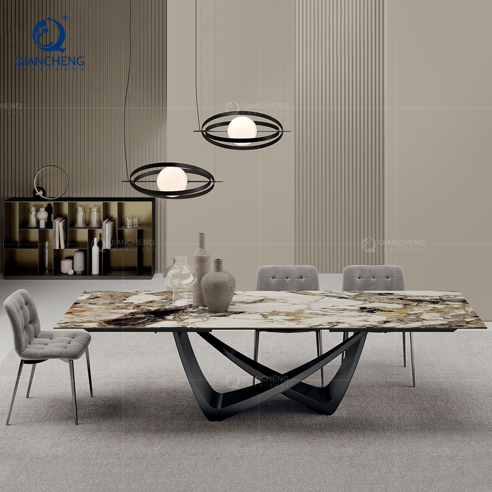 Hot selling dining table with 8 chairs, 12mm ceramic marble tabletop, cheaper modern home furniture, expandable dining table set