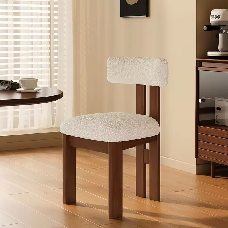 Nordic style solid wood backrest dining chair Wabi sabi style dining chair simple makeup chair