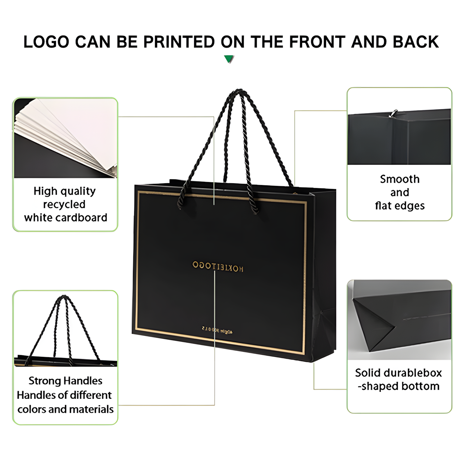 Customized personalized printing brand logo black luxury laminated gift clothing retail shopping bag with ribbon handle
