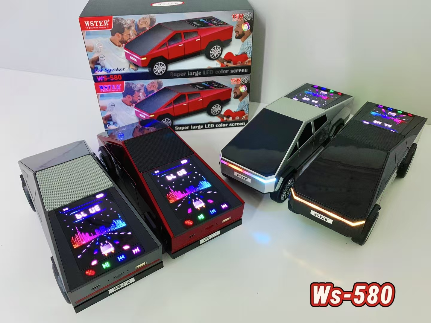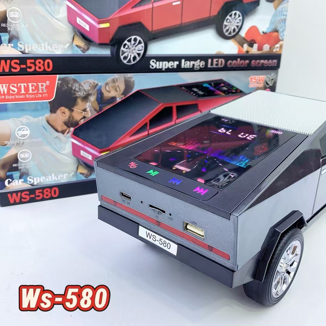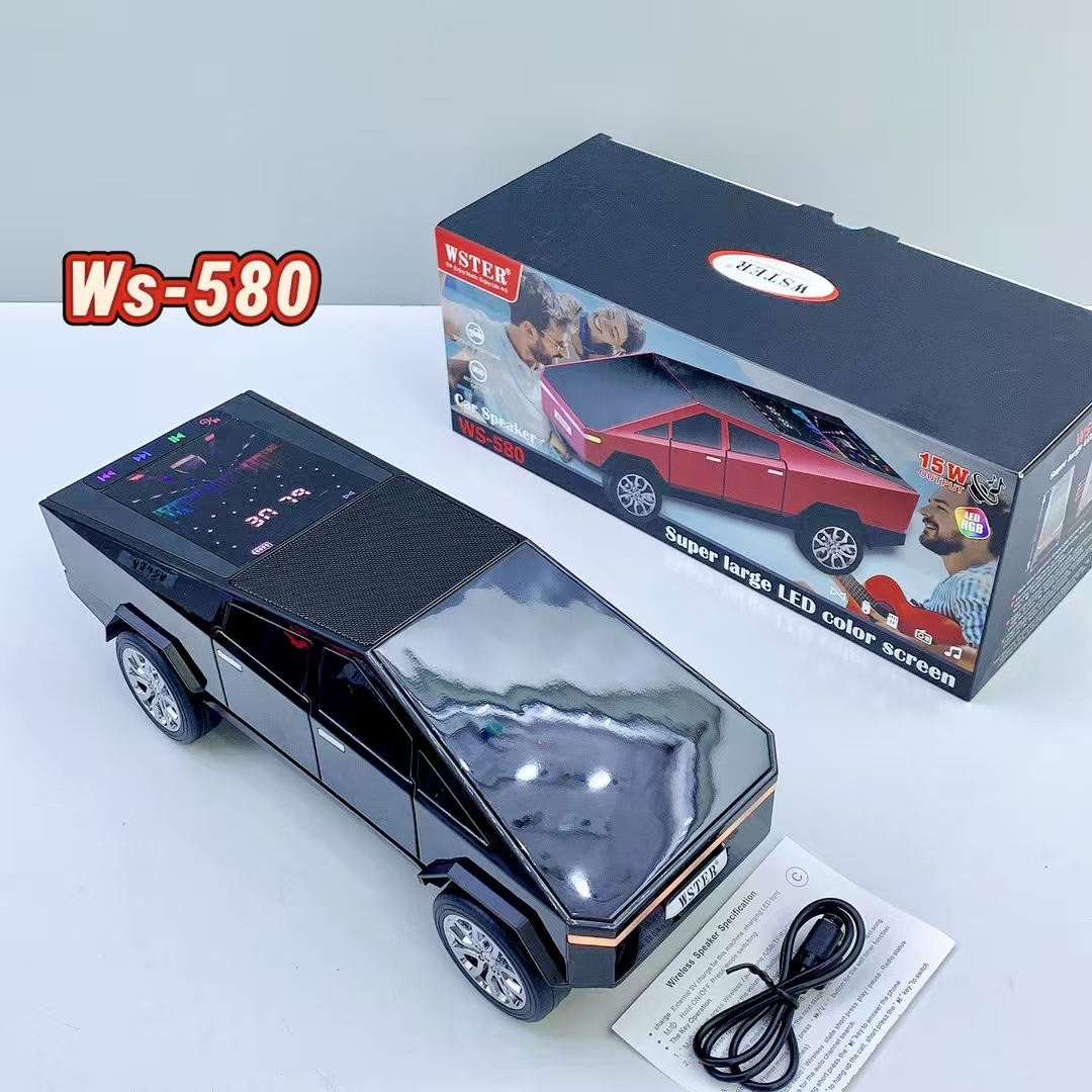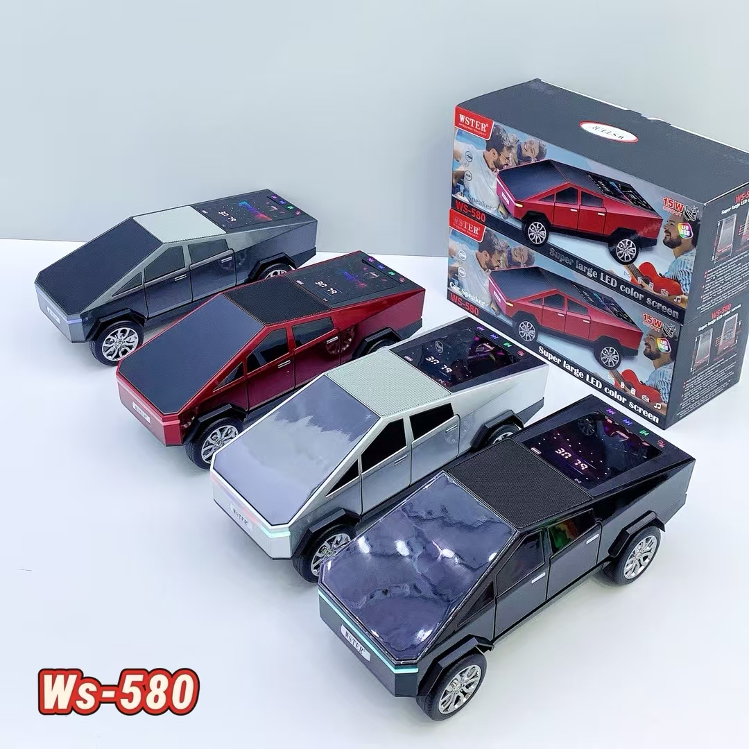2025 New WS-580 Tesla Cyberpickup Wireless Bluetooth Speaker RGB Light Car Model Car DJ Speaker Dynamic Color Screen Light