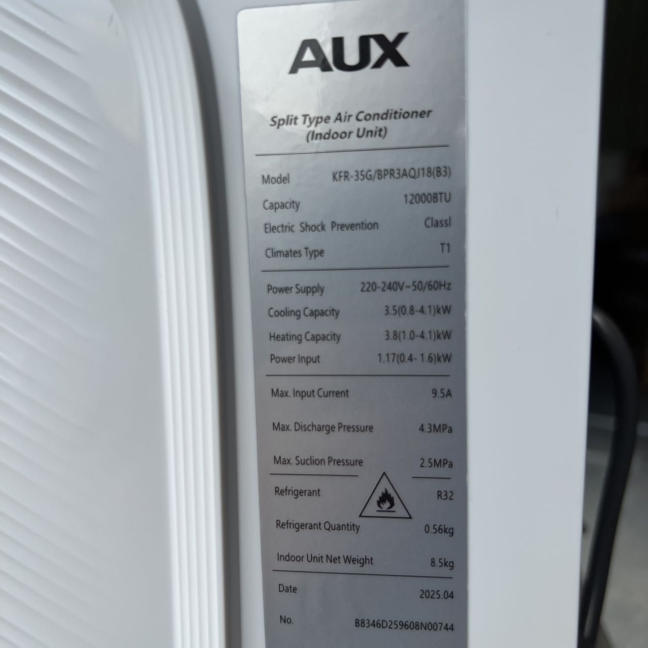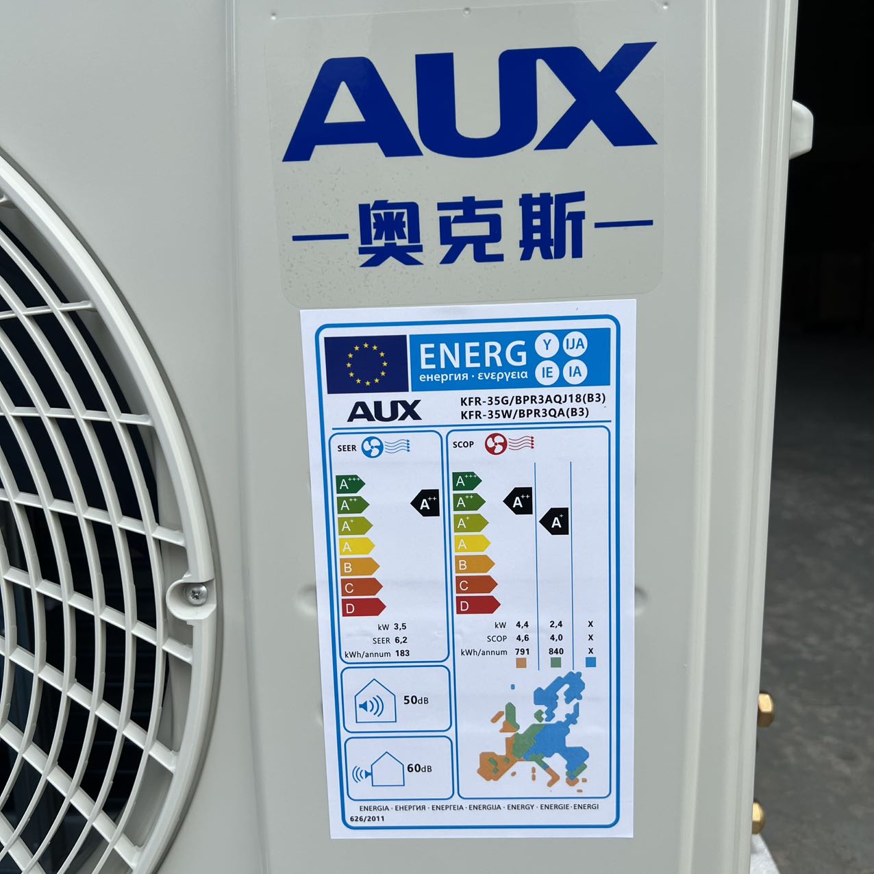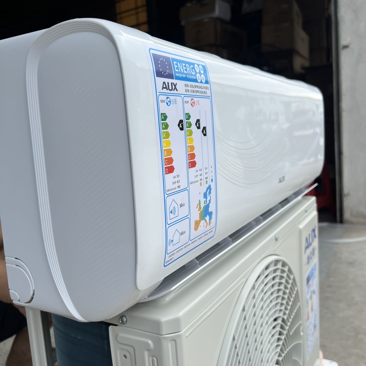 AUX 12000btu Mini Split DC Variable Frequency R32 Strong Heating -20 ° C Heat Pump EU Standard SEER 6.2 220V 50/60hz with 1000W PTC