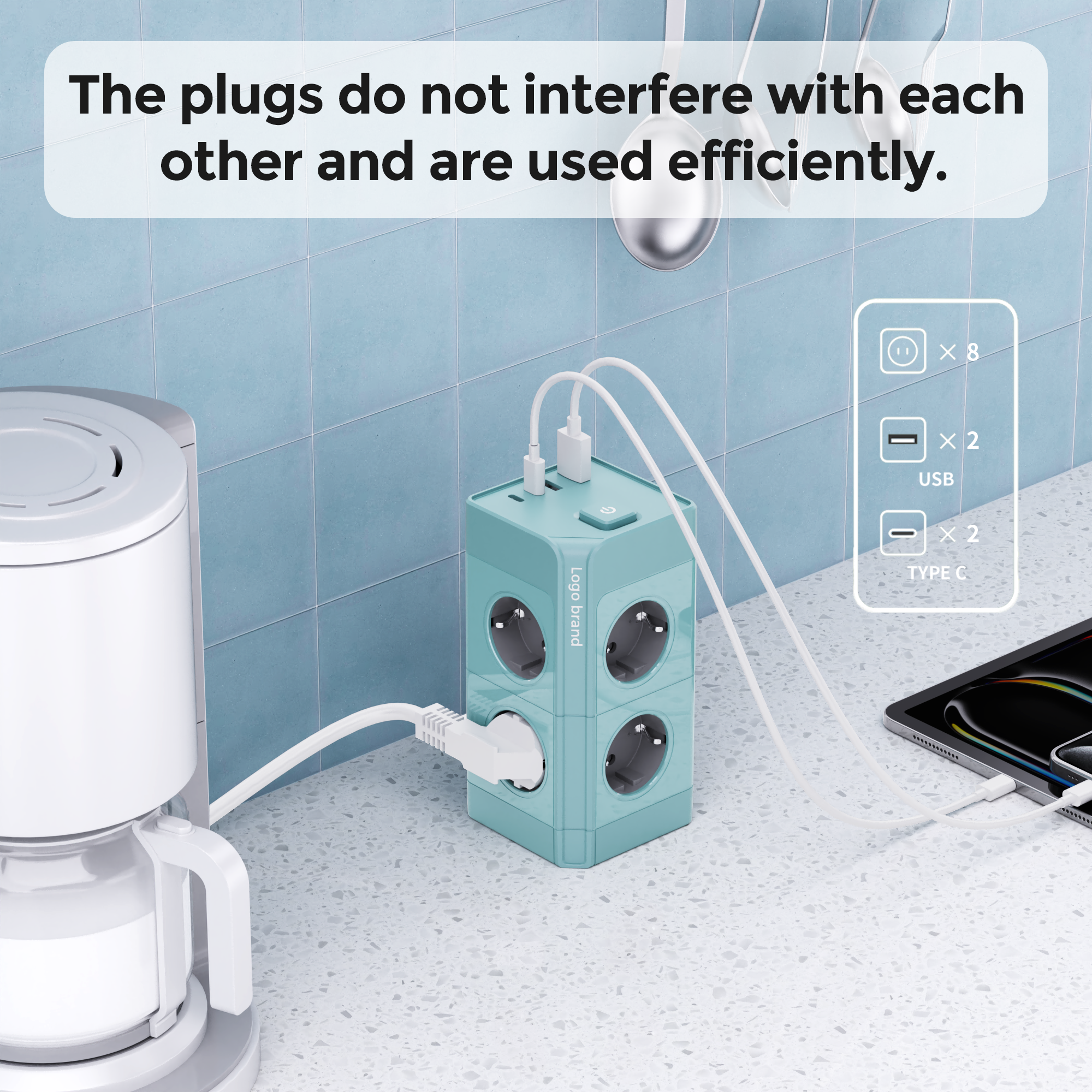 NEW Product Tower Multi USB Socket 4/8/12 Outlets Extension Sockets Multiple EU Standard with 2 USB-A and 2 USB-C