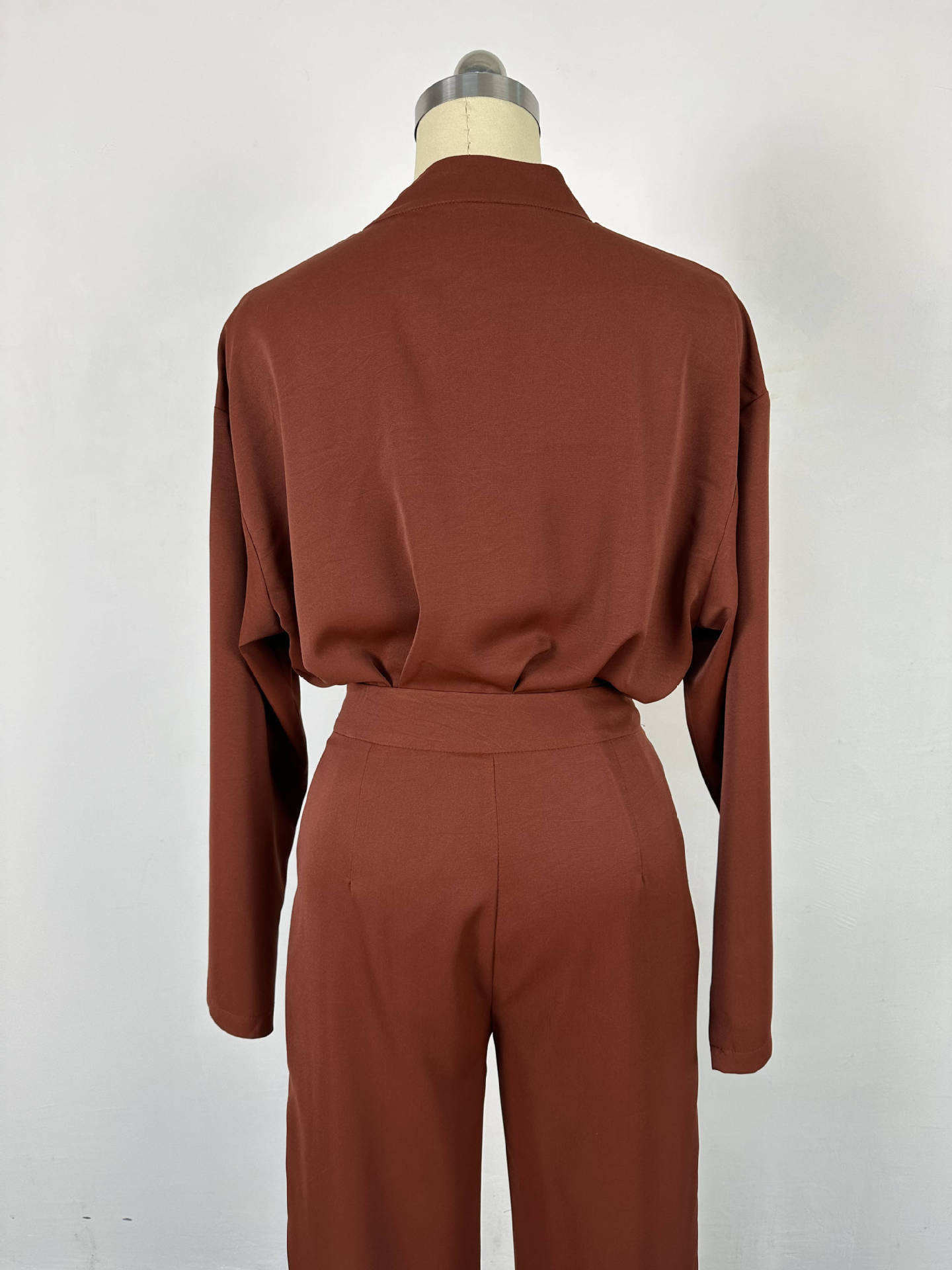 2025 Roupas Femininas Da Moda Spring New Casual Women's Clothing Plus Size V-Neck Long Sleeve Jacket A-Line Wide Leg Trousers