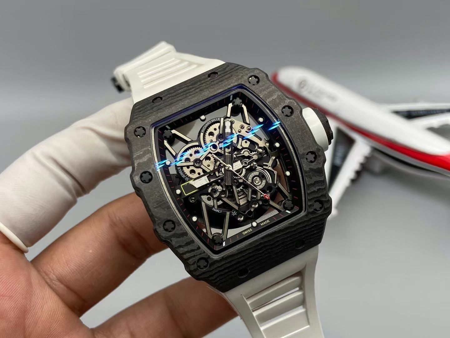 RMLICHA Men's Luxury Carbon Fiber Rubber Strap Automatic Mechanical Watch 44mm 10 Bar Waterproof Sapphire Crystal Dial
