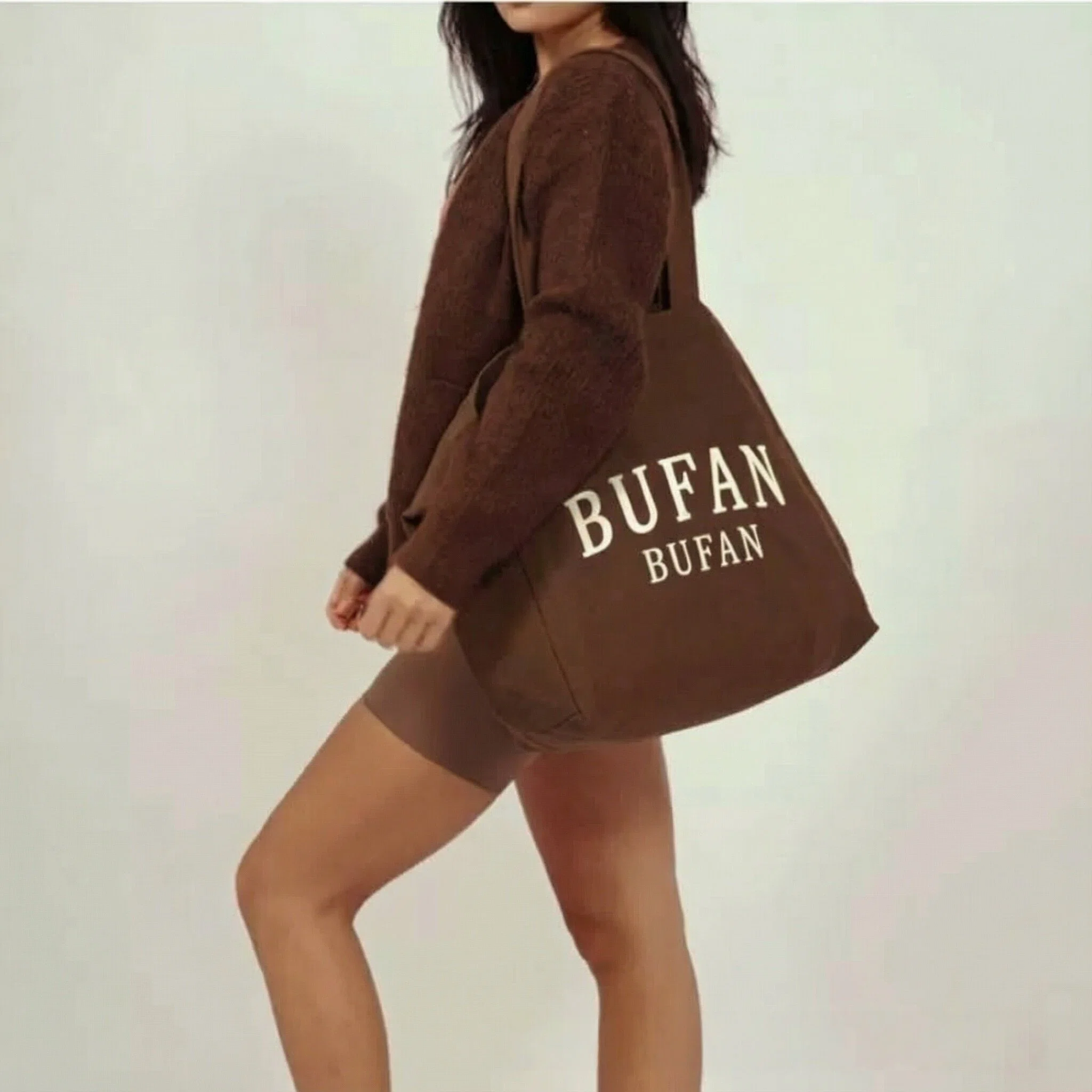 BFYS Brown Large Cotton Canvas Handbag with Letter Pattern Rope Handle Reusable Durable Grocery Shopping Yoga Sports Gift Bag