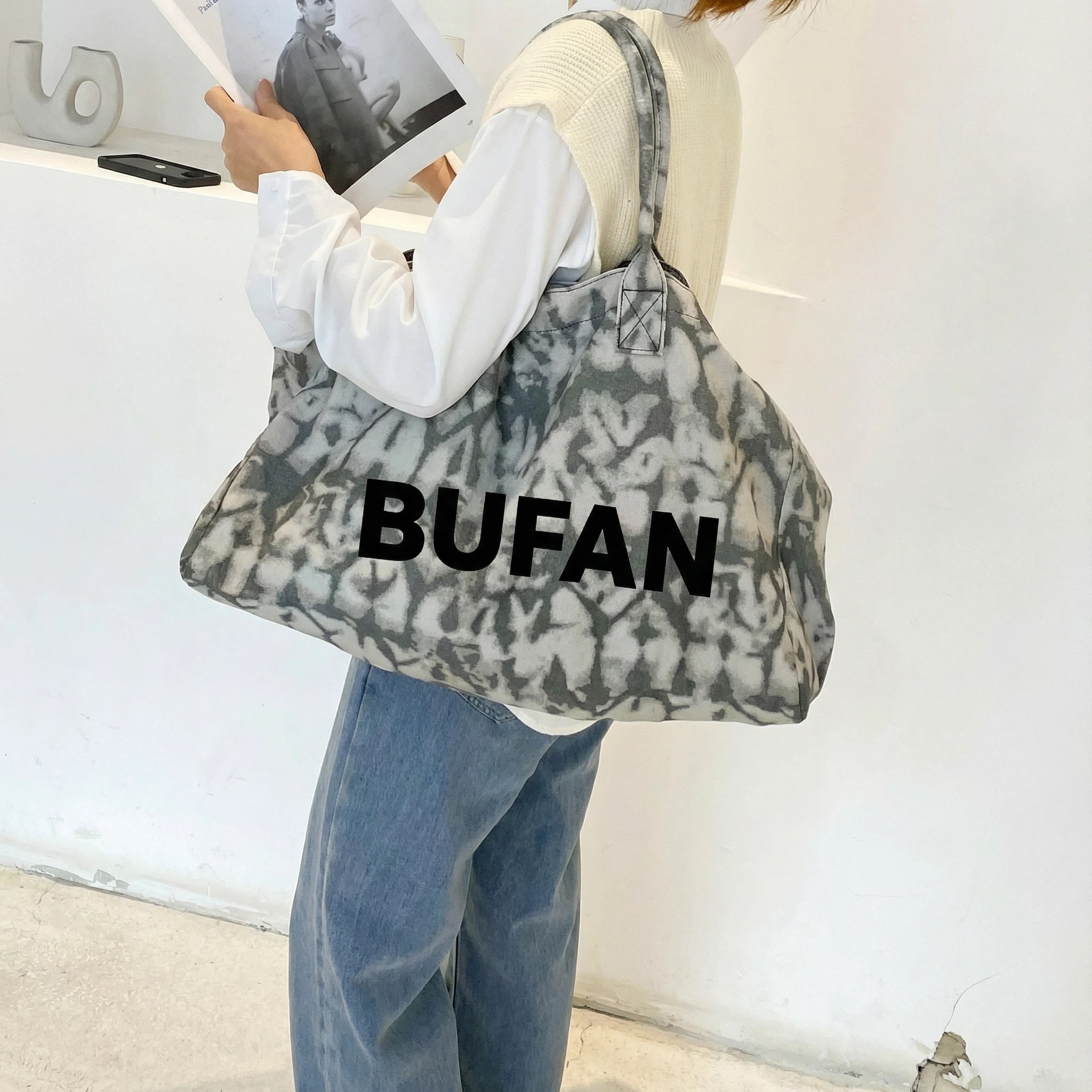 BF Iconic unisex camouflage leopard print oversized waterproof yoga handbag with fashionable canvas style and zipper