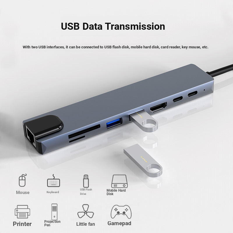 Portable computer 8K industrial grade power supply charging multi port laptop 2.0 4k 7-port 11 adapter 8-in-1 high-definition movie 3.0 Type USB C hub