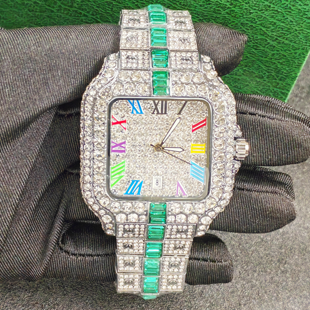 High quality diamond inlaid fashionable luxury waterproof watch pointer display metal material men's quartz watch