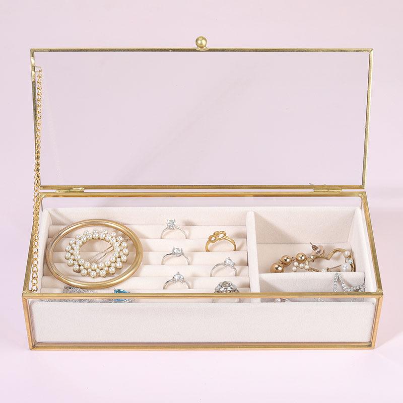 Simple and elegant large capacity rectangular glass transparent lipstick jewelry storage box, suitable for dressing table display