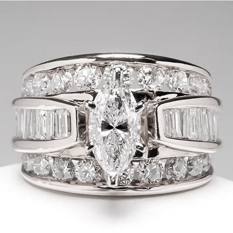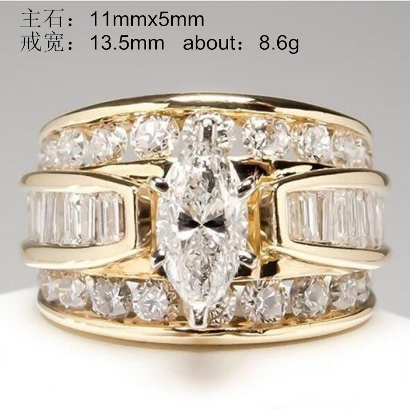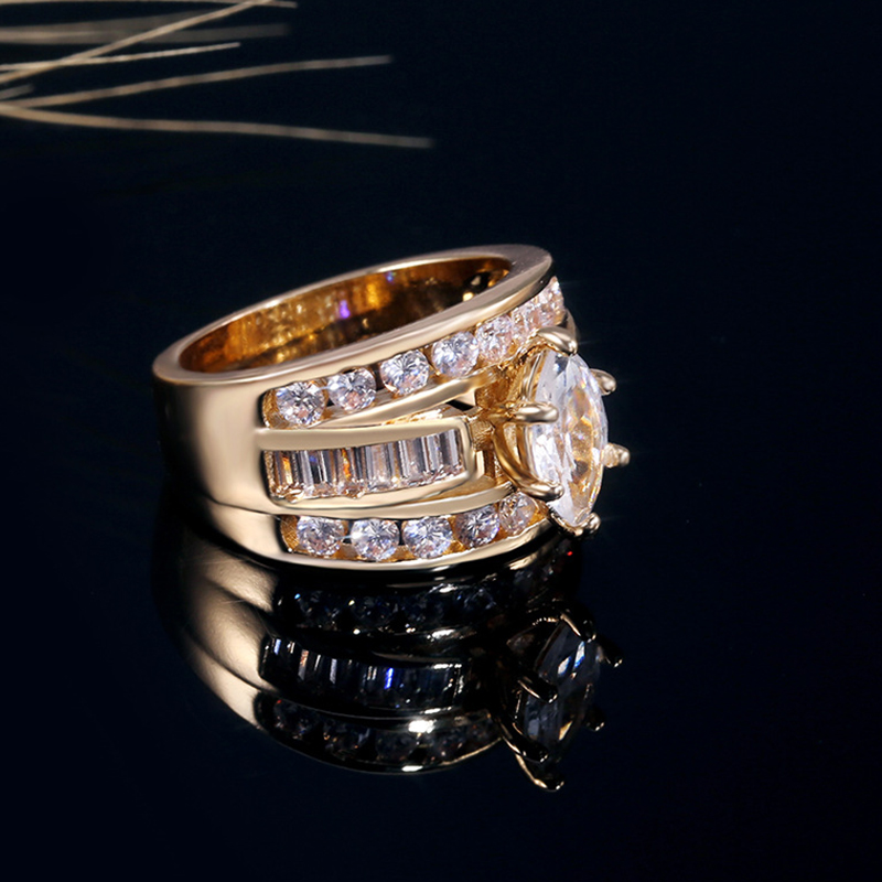 CAOSHI 时尚黄铜首饰 3A 马眼形切割女士结婚戒指 银金镀玫瑰金方晶锆石女士戒指