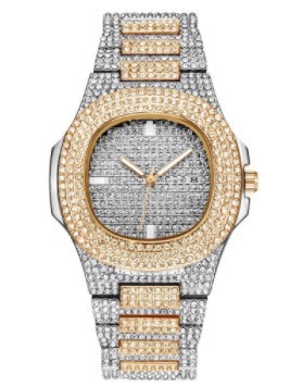 OEM ODM Top Brand Luxury Bling Quartz Square Men Watch Relojes Hip Hop Gold Full Diamond Iced Out Watch