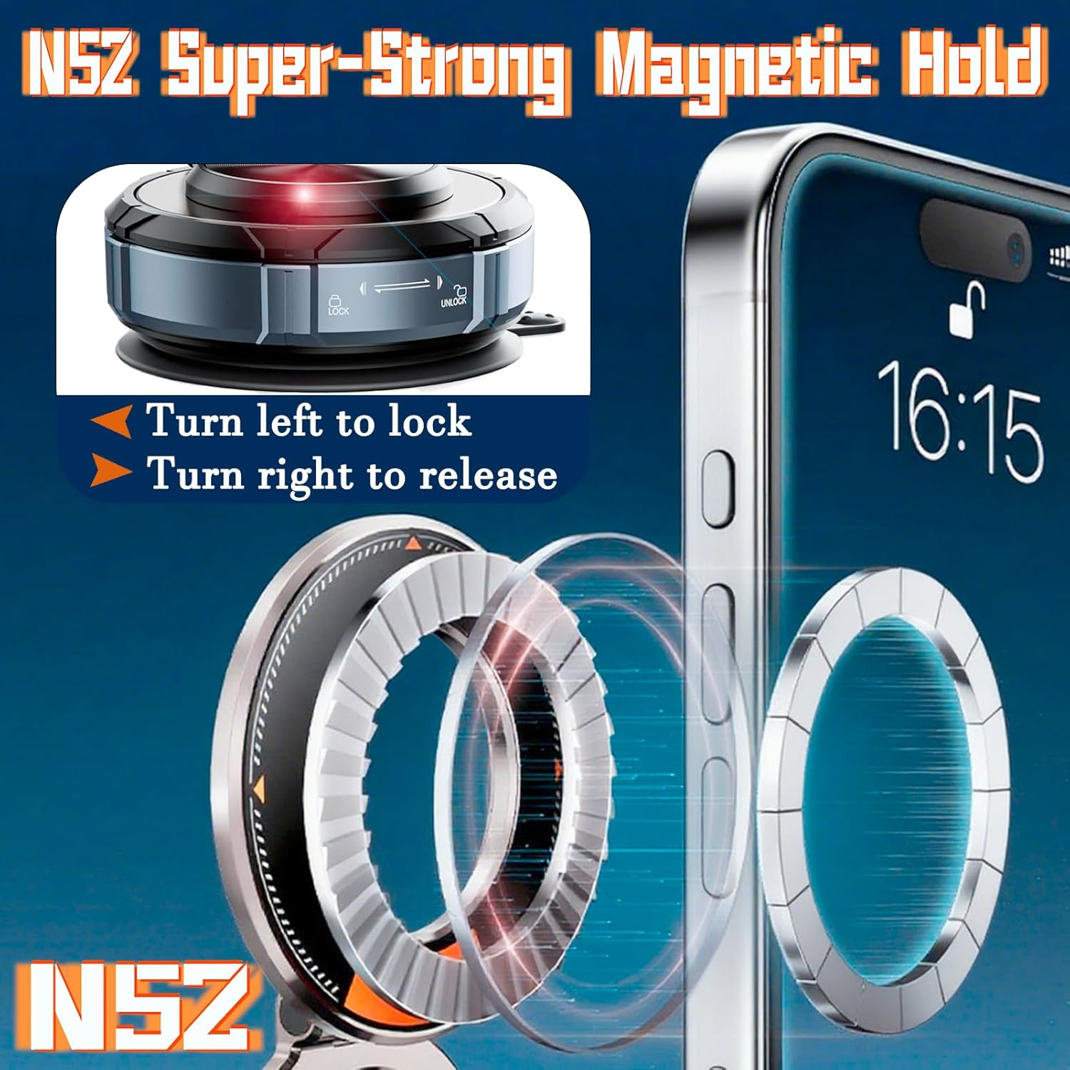 Upgrade suction cup phone holder 360 zinc alloy phone holder vacuum magnetic car holder suitable for iPhone 17 16 15 14 13 12 Android