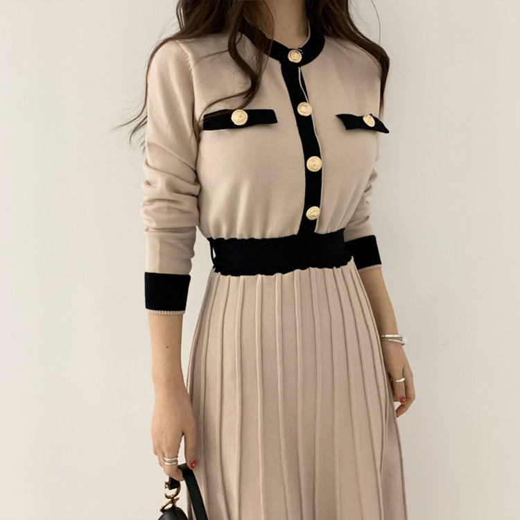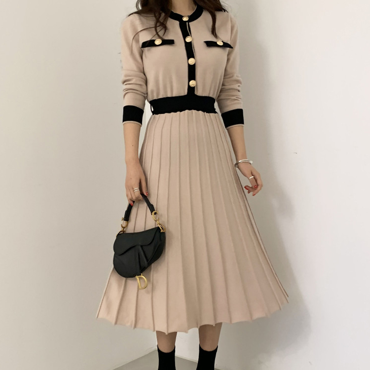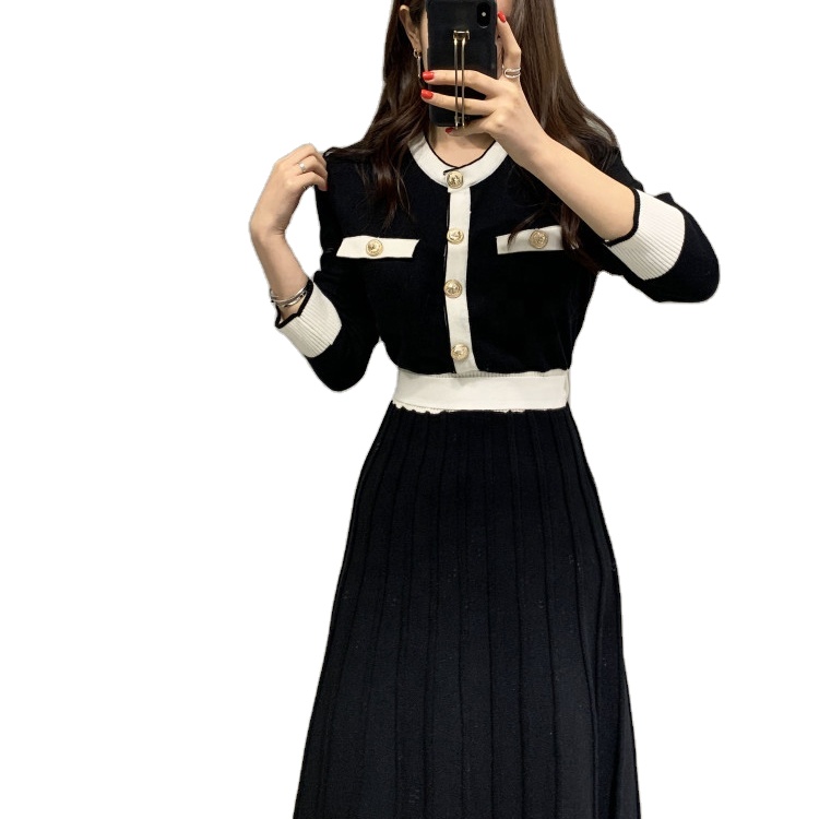 Knitwear Manufacturers Custom Elegant Women's Knit Slim a Line High Waist Pleated Dress Women Soft Ladies Long Sweater Dress