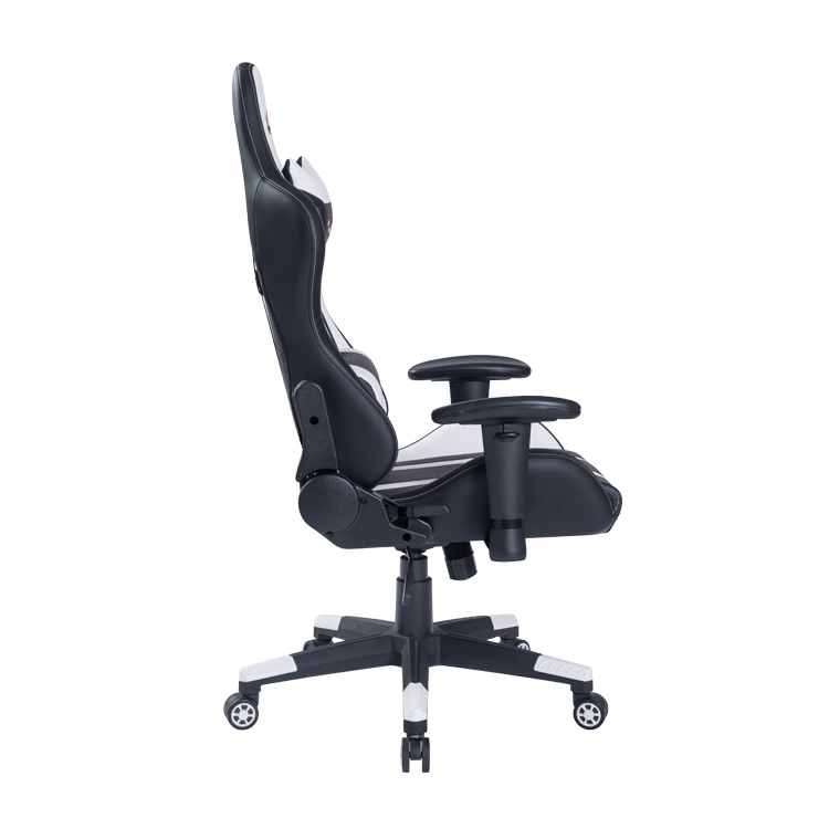 Low cost customized comfortable ergonomic synthetic leather rotating reclining steel frame gaming chair