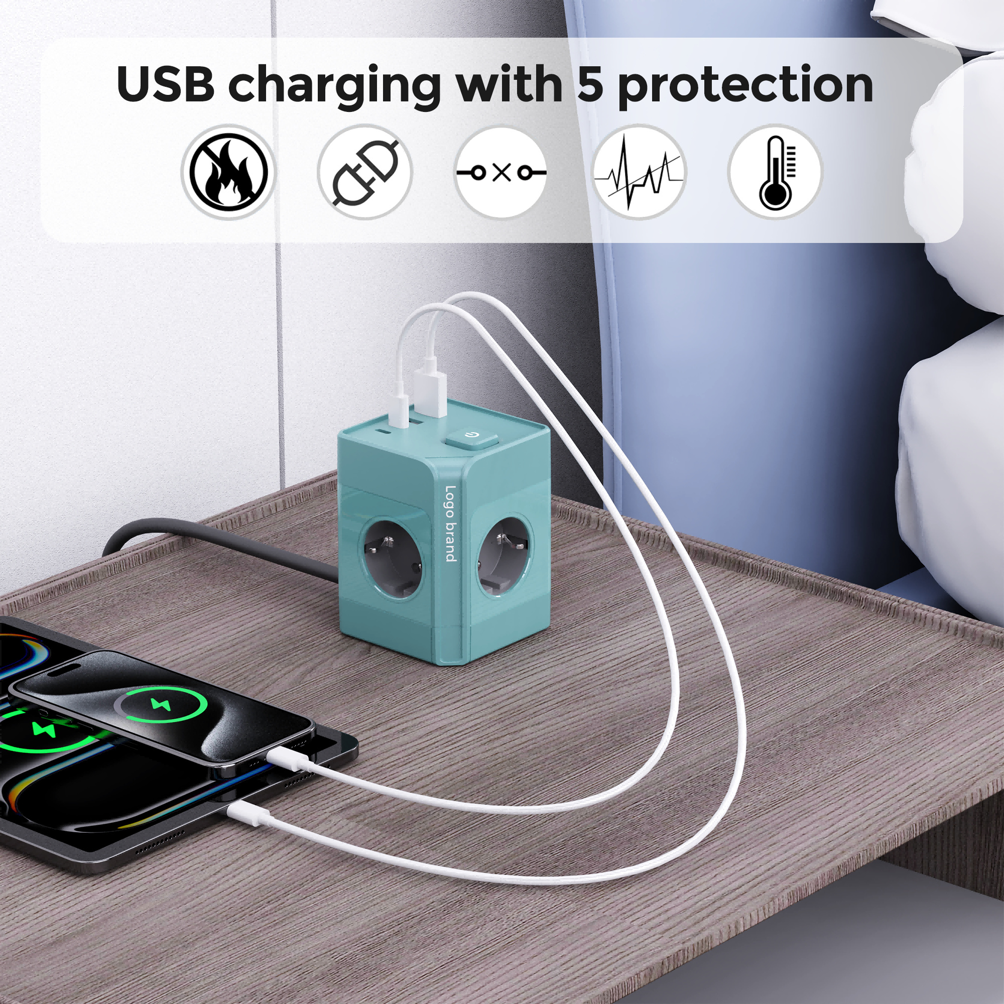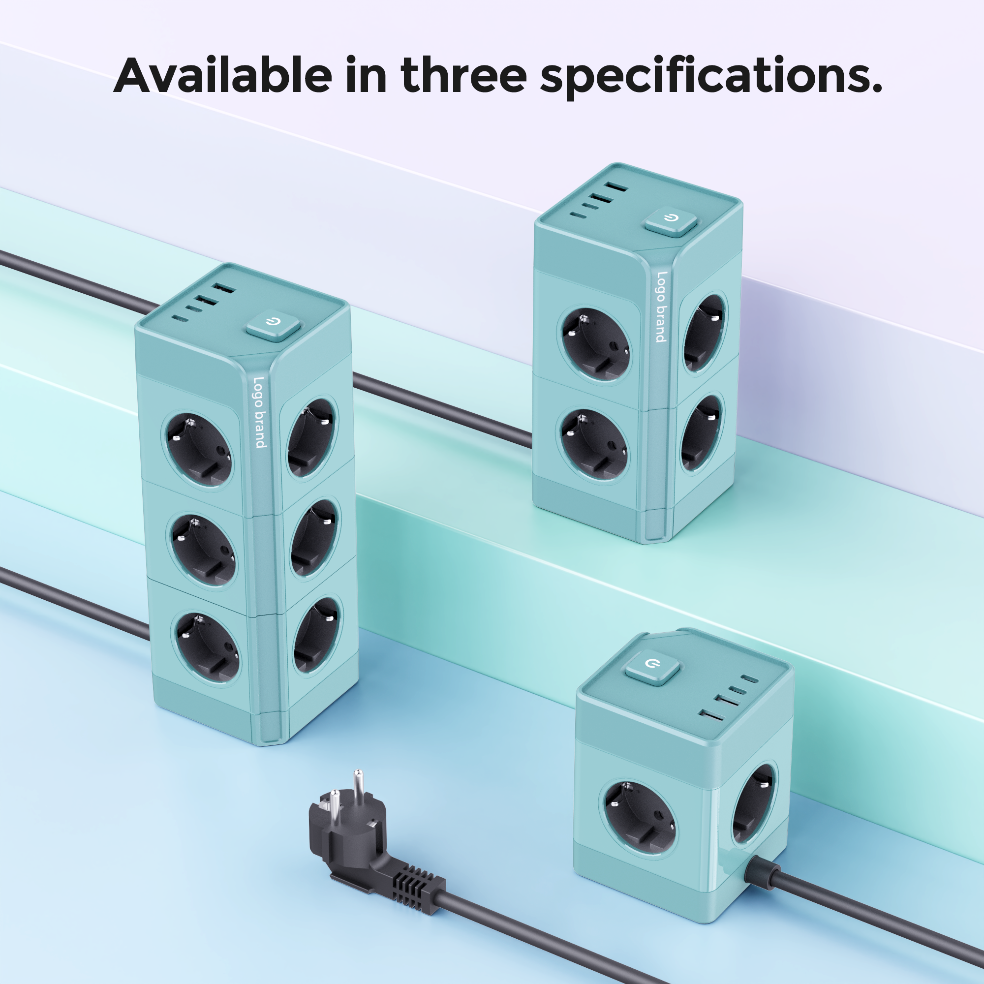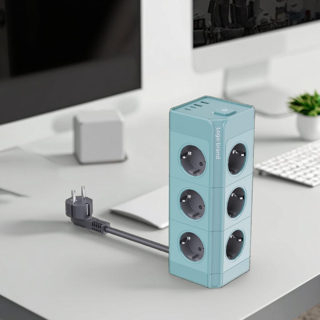 NEW Product Tower Multi USB Socket 4/8/12 Outlets Extension Sockets Multiple EU Standard with 2 USB-A and 2 USB-C