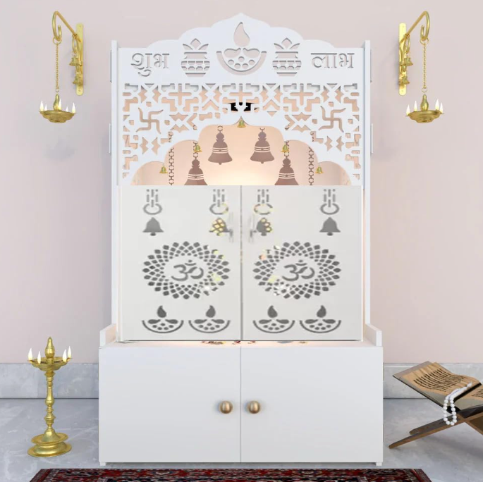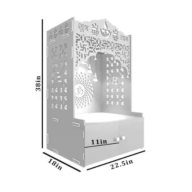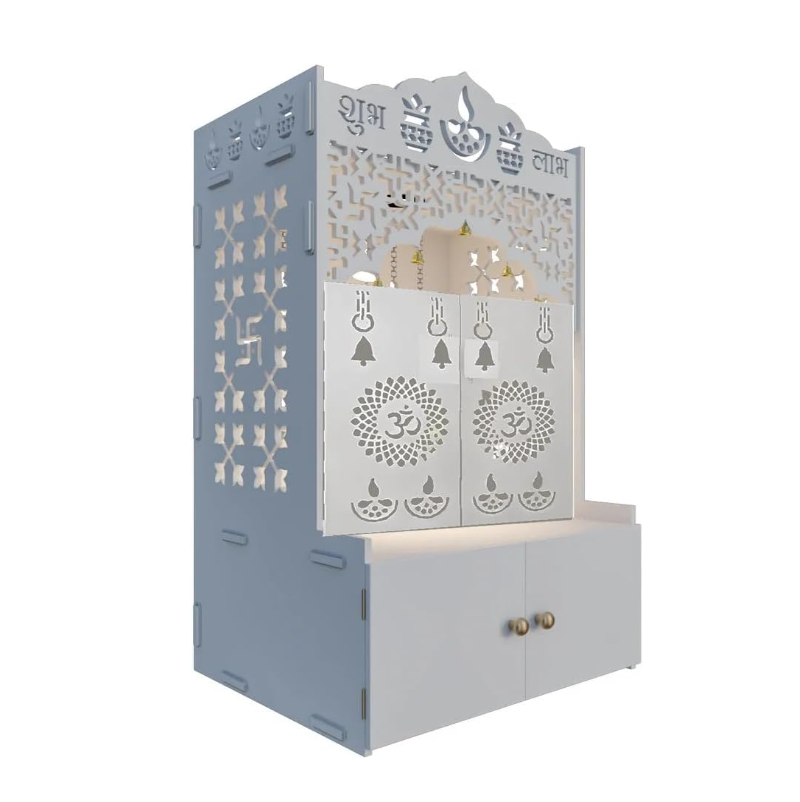 Home White Pooja Mandir Temple Independent Decoration Hindu Wooden Temple with Door