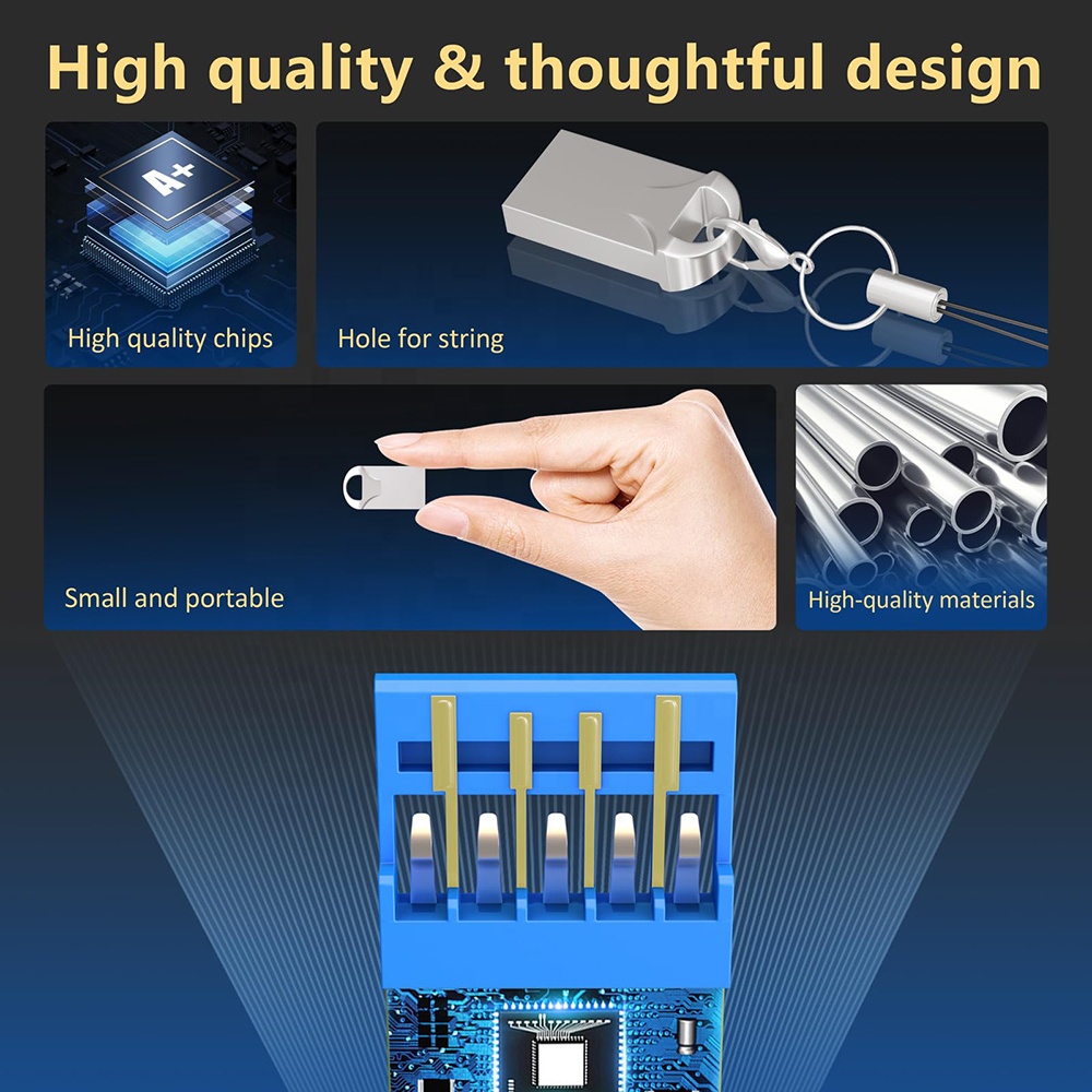 Hot selling 2025 ultra mini metal material 64GB USB flash drive, 2GB 4GB 8GB memory stick, 16GB 32GB thumb drive with lanyard