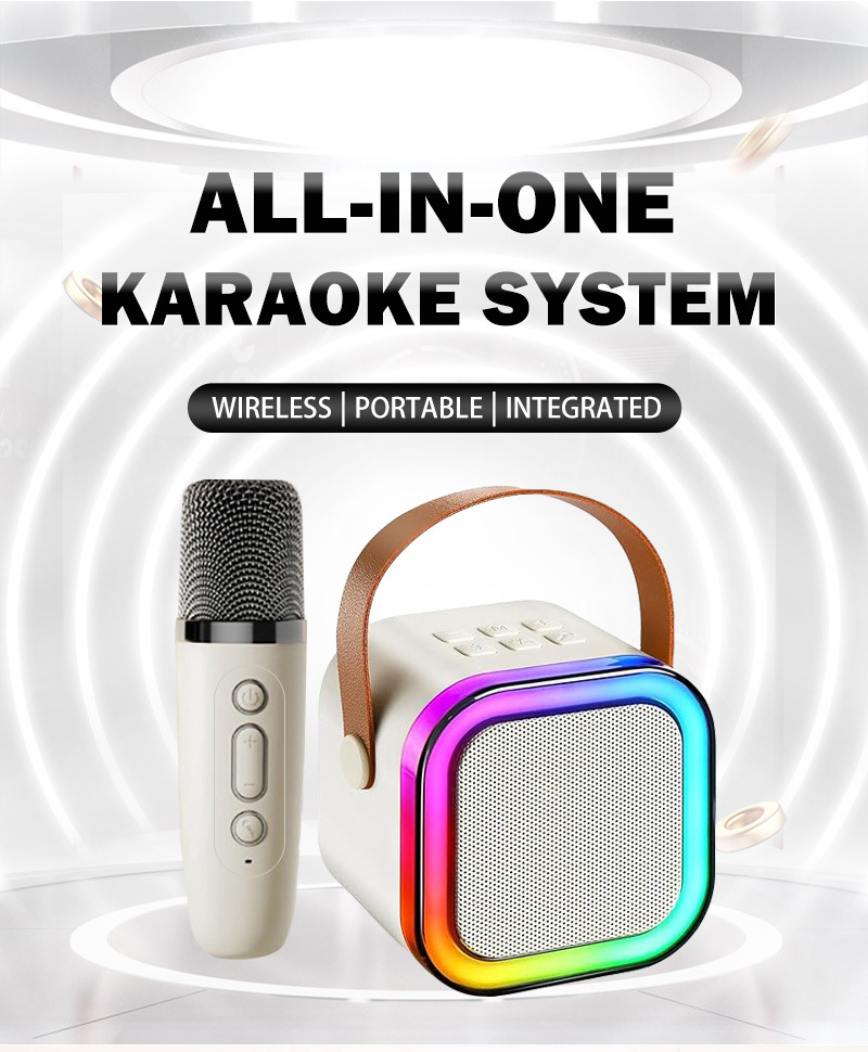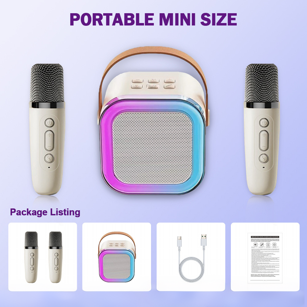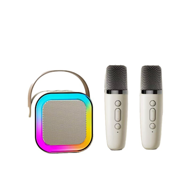 Children's portable mini K12 karaoke speaker RGB light dual microphone wireless Bluetooth audio 10W home theater outdoor singing battery