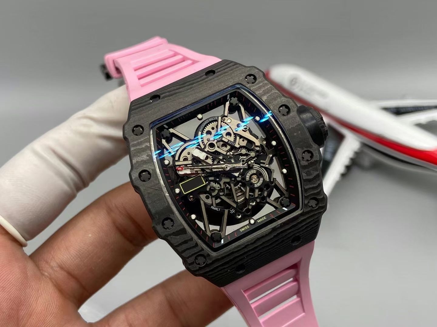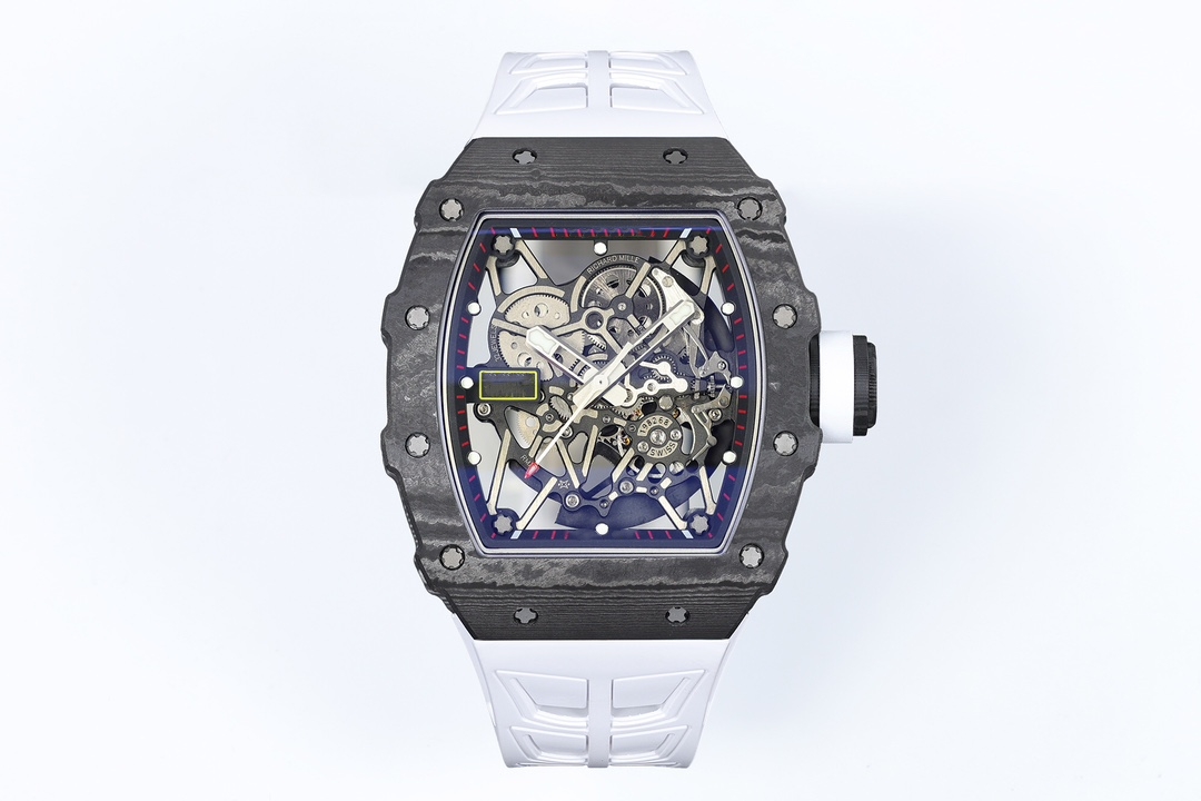 RMLICHA Men's Luxury Carbon Fiber Rubber Strap Automatic Mechanical Watch 44mm 10 Bar Waterproof Sapphire Crystal Dial