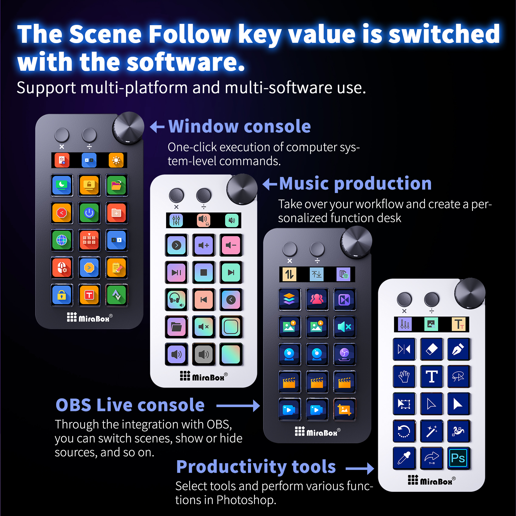 Mirabox N1 Mini Stream Deck for TKL Keyboard, 15 Key LCD Programmable Controller for Live OBS Twitch and Content Creation