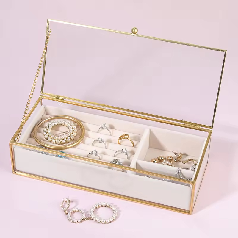 Simple and elegant large capacity rectangular glass transparent lipstick jewelry storage box, suitable for dressing table display