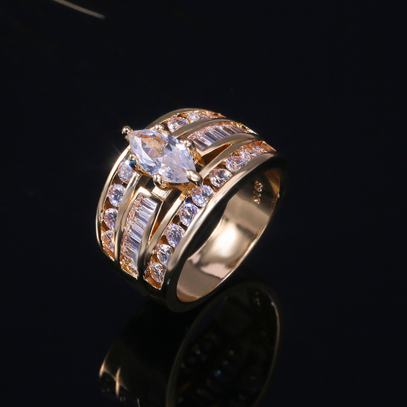 CAOSHI 时尚黄铜首饰 3A 马眼形切割女士结婚戒指 银金镀玫瑰金方晶锆石女士戒指