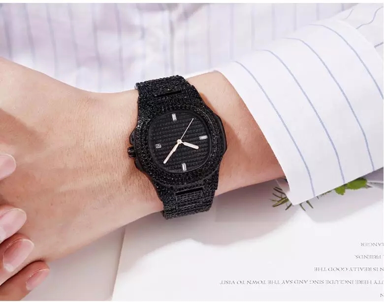 OEM ODM Top Brand Luxury Bling Quartz Square Men Watch Relojes Hip Hop Gold Full Diamond Iced Out Watch